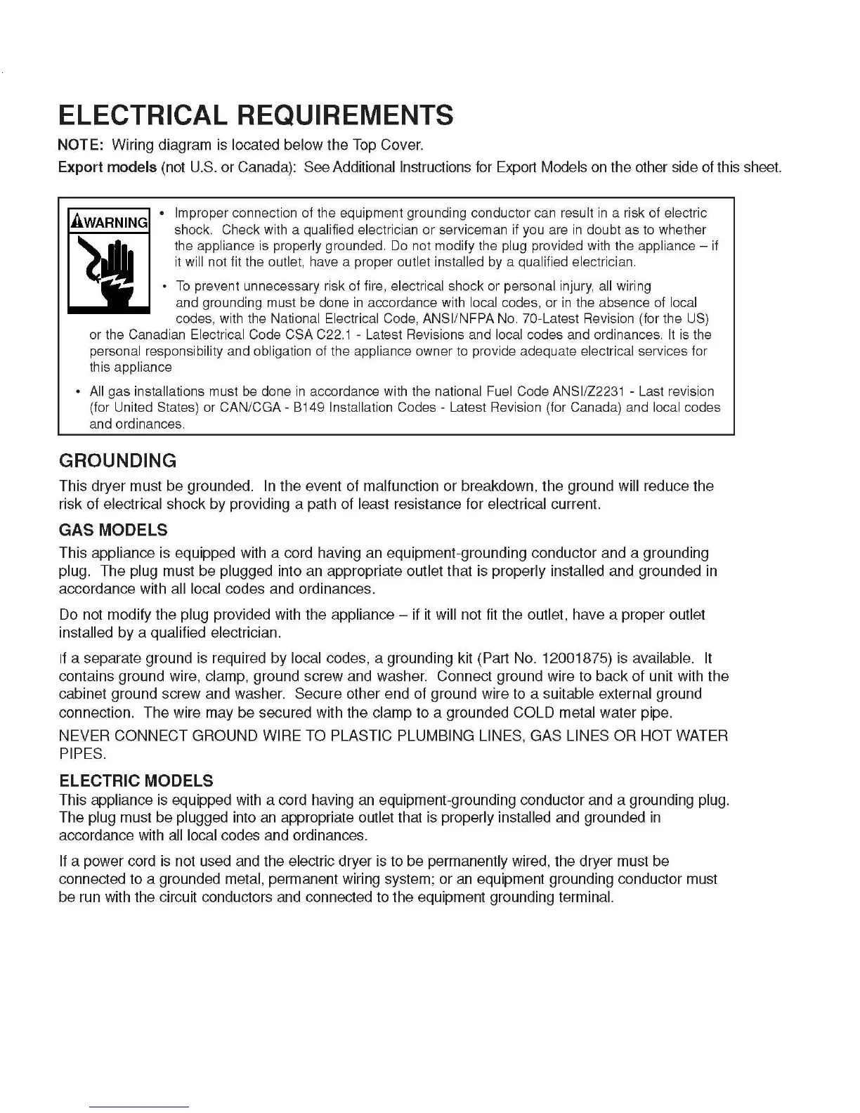 Maytag MDE9700A Series - Electrical and Grounding Requirements