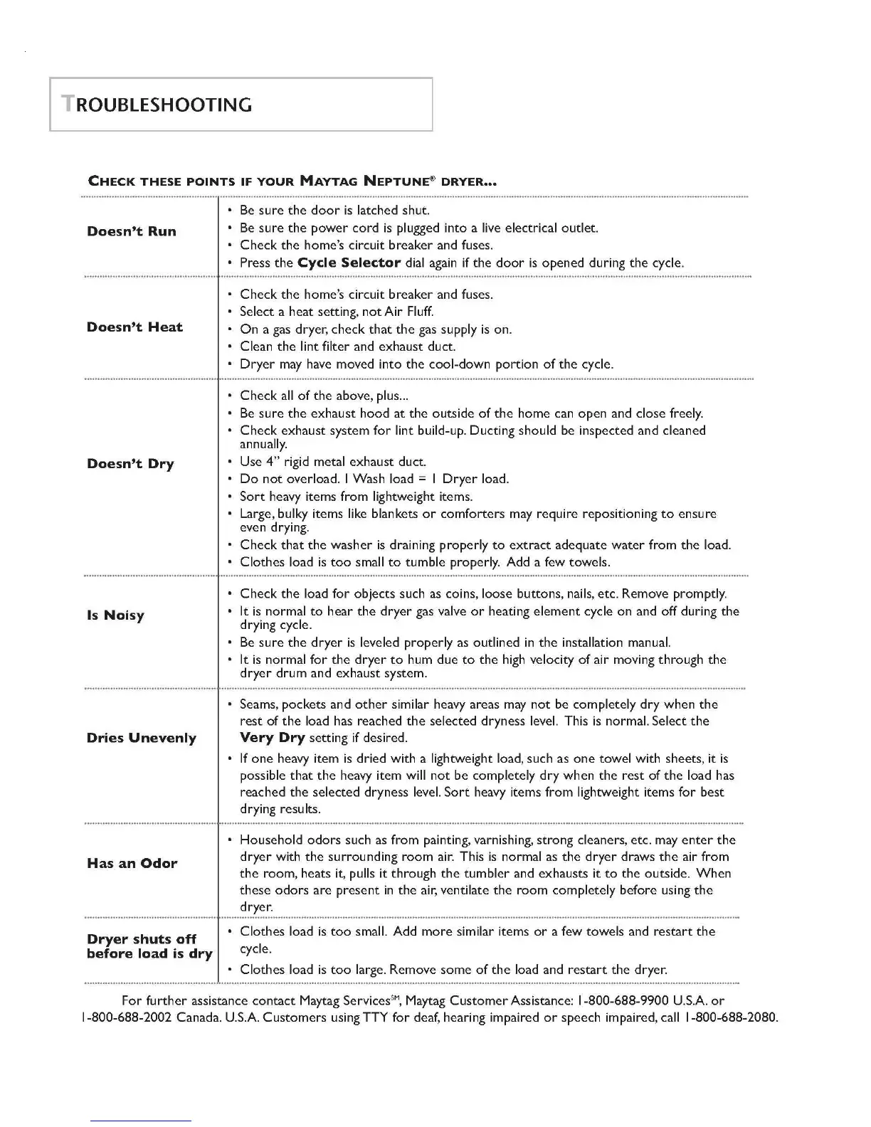 Maytag MDE9700A - Dryer Troubleshooting; Troubleshooting Common Issues