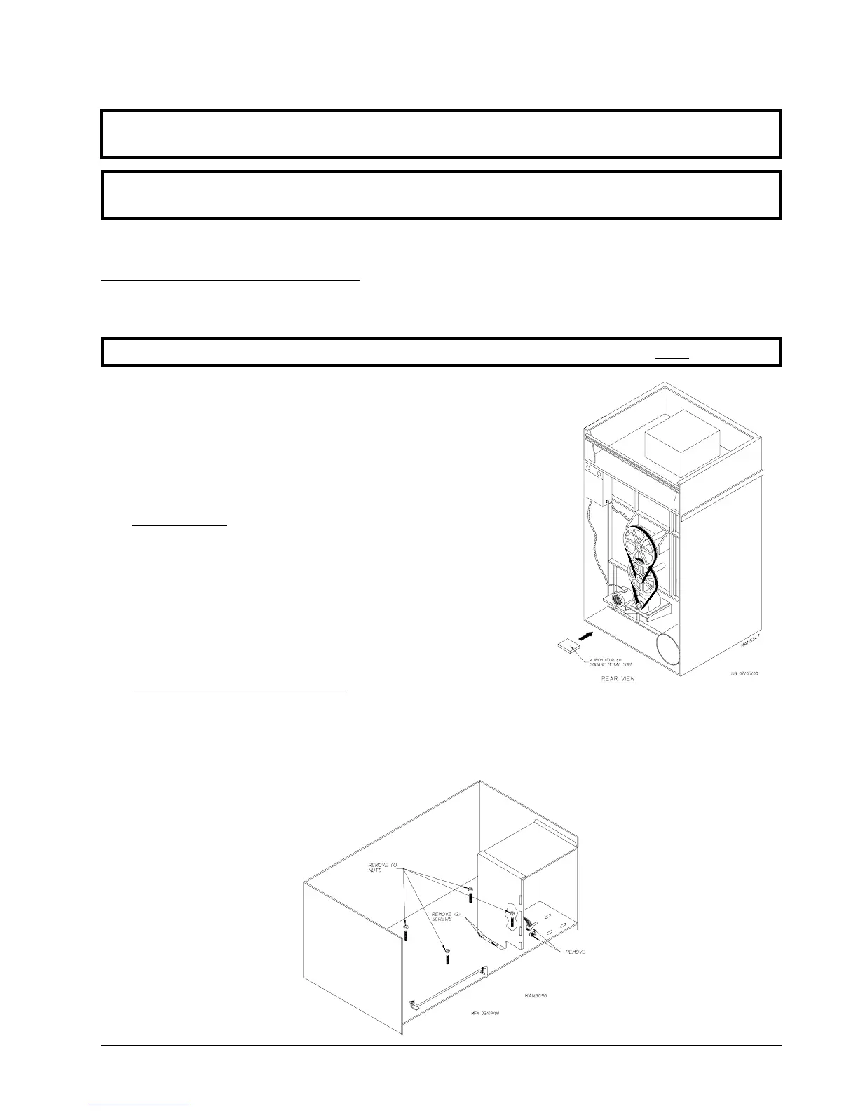To level dryer, place 4-inch (10.16 cm) square metal shims (refer