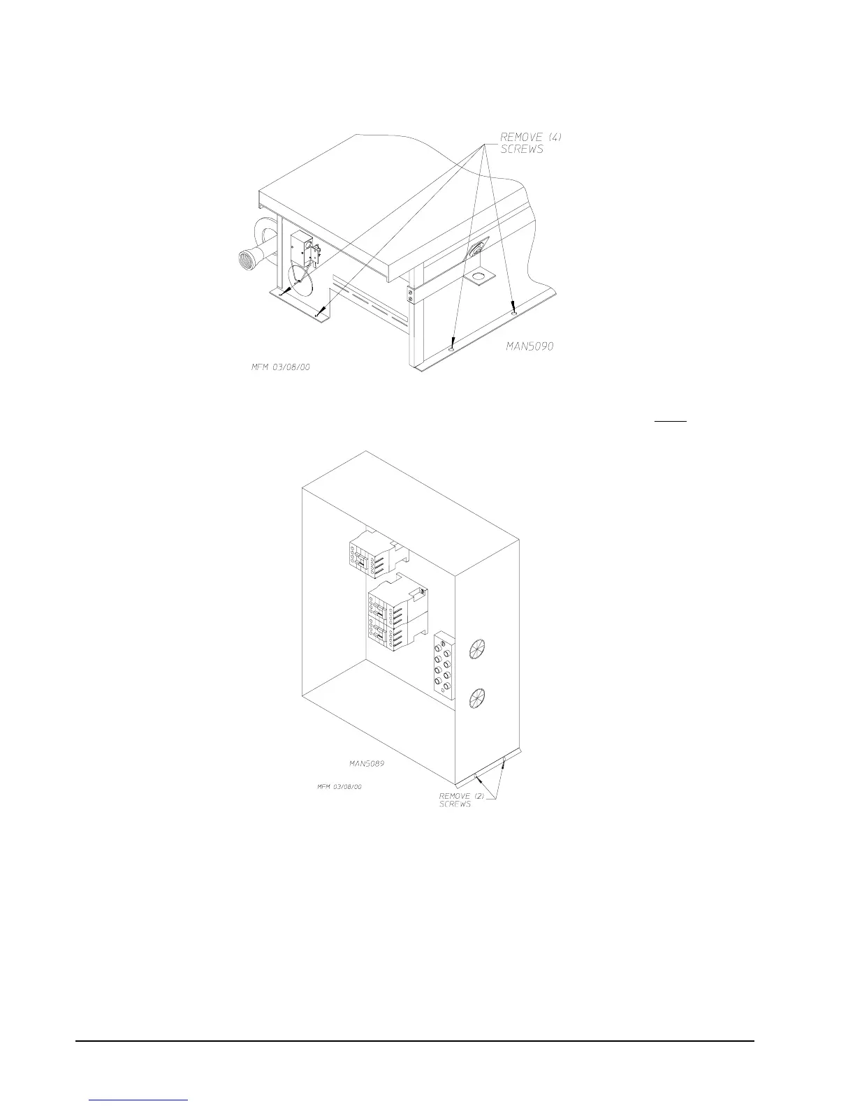 c. Remove the four (4) self-tapping screws on the burner box that secure it to the top of the dryer shown