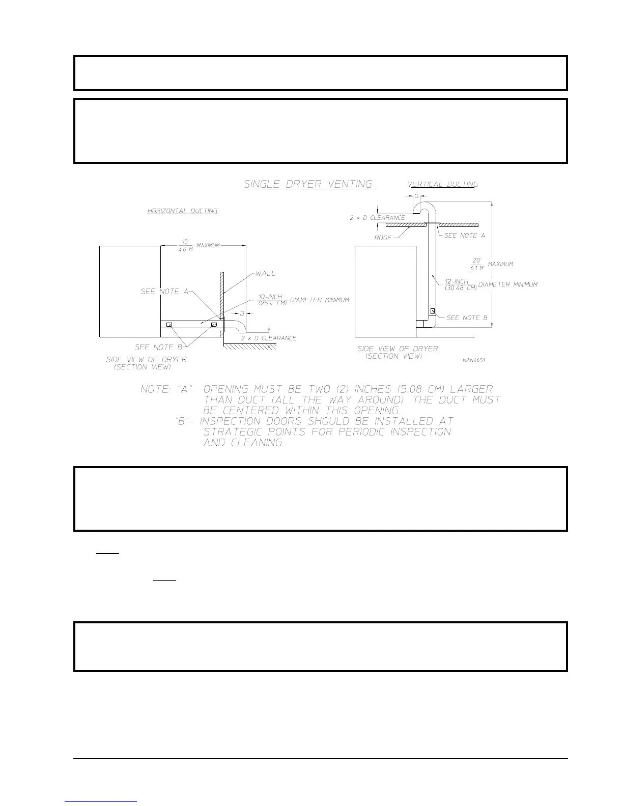 IMPORTANT: Minimum duct size for a dryer that is vented vertically is 12-inches (30.48 cm) for a