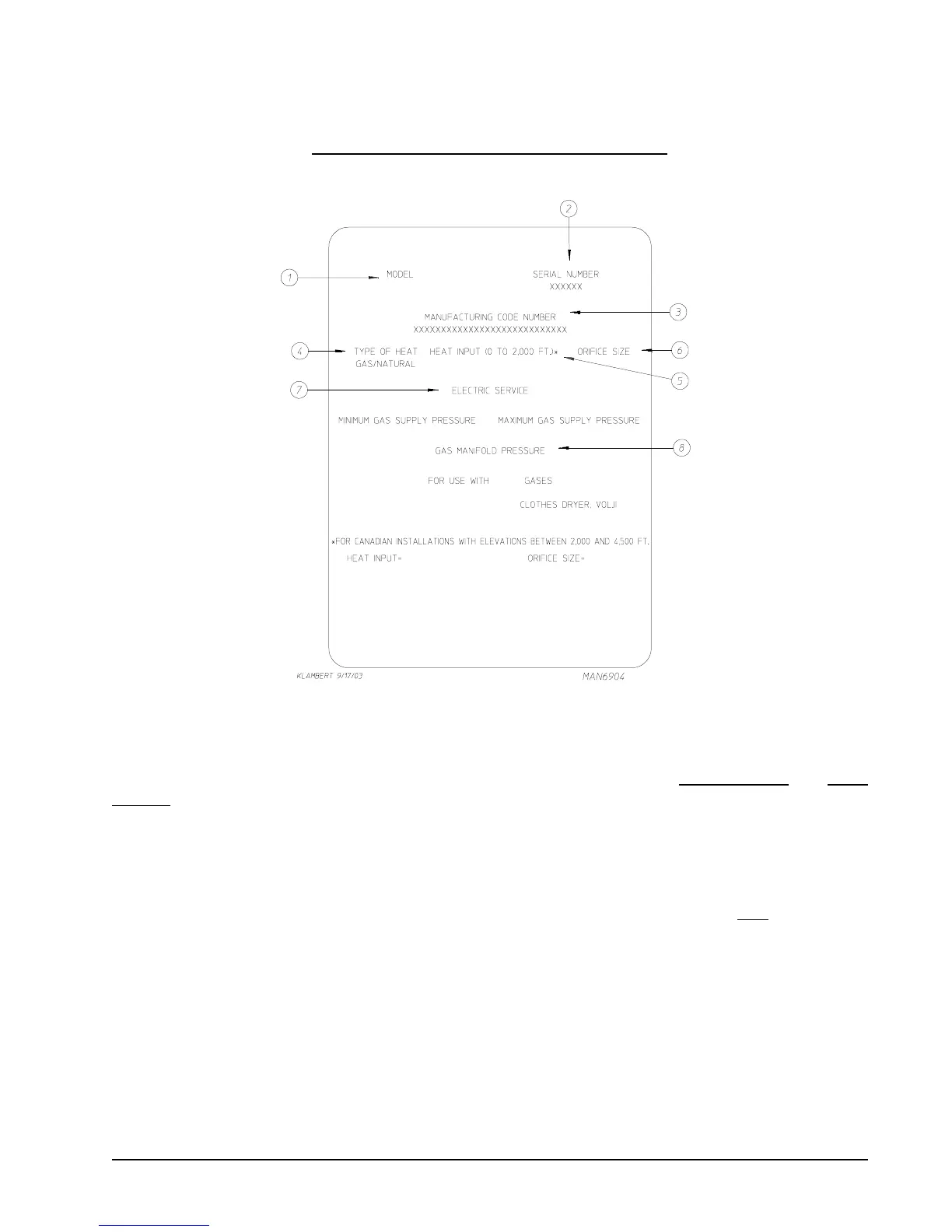 5. HEAT INPUT (for GAS DRYERS) – This describes the heat input in British thermal units per hour (Btu/hr).