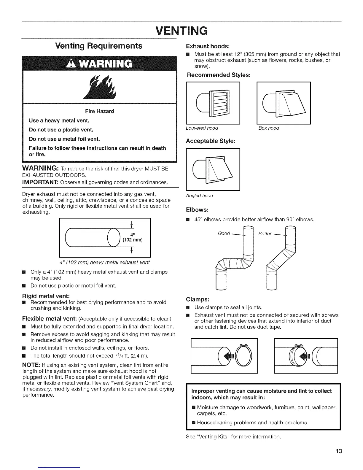 [] Only a 4" (102 mm) heavy metal exhaust vent and clamps