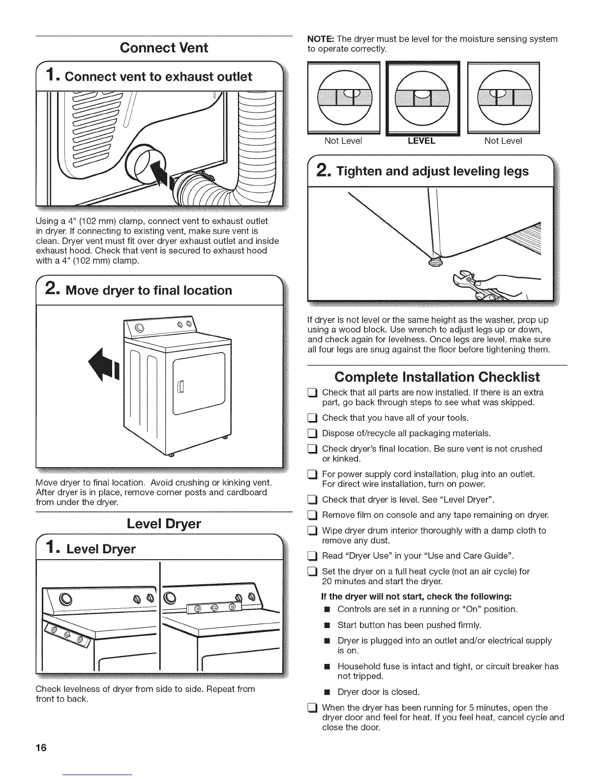 [_ Check dryer's final location. Be sure vent is not crushed