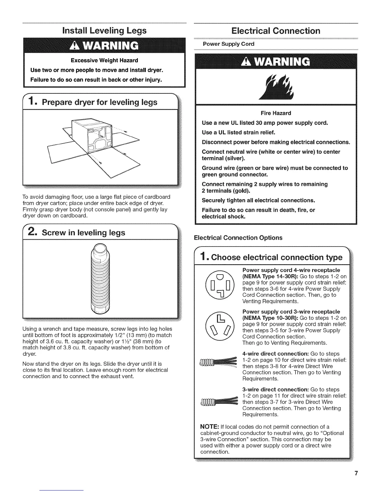 (NEMA Type 14-30R): Go to steps 1-2 on