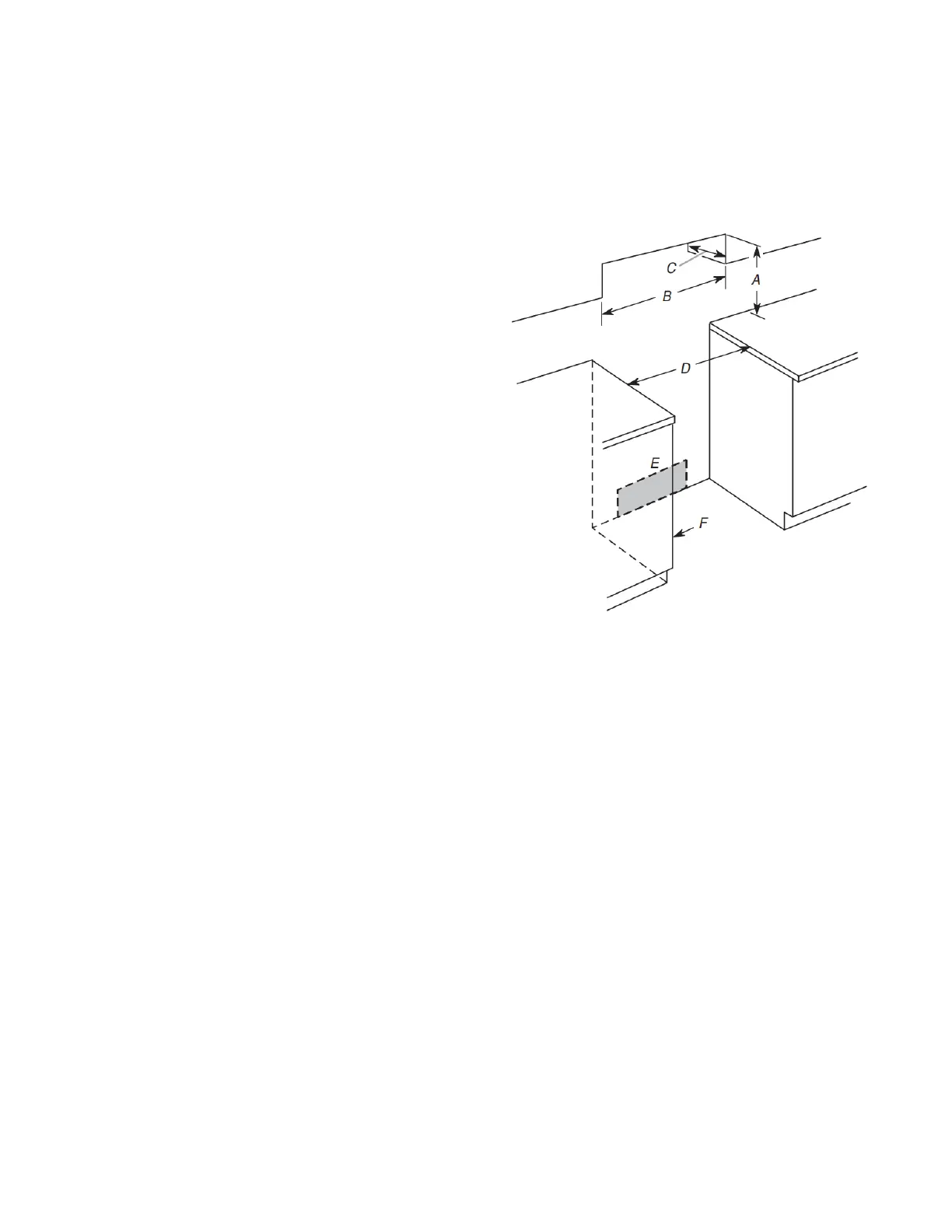 F. Cabinet door or hinges should not extend into the cutout.