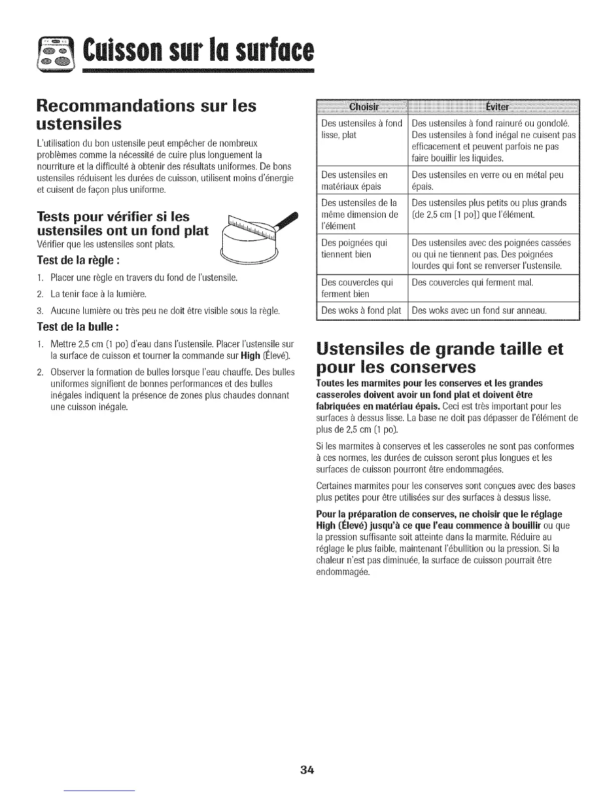 casserolesdoiventavoir un fond plat et doivent 6ire