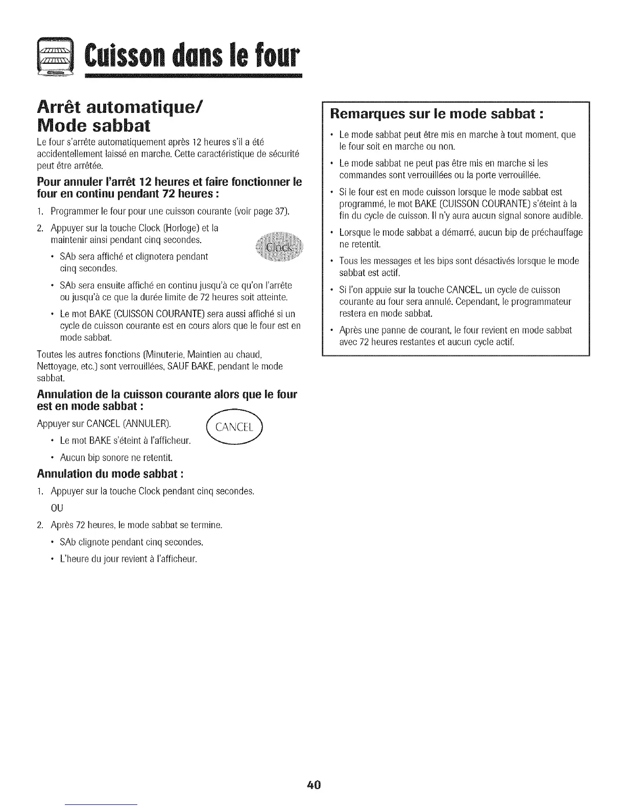 ° Sile four esten mode cuissonIorsquele modesabbatest