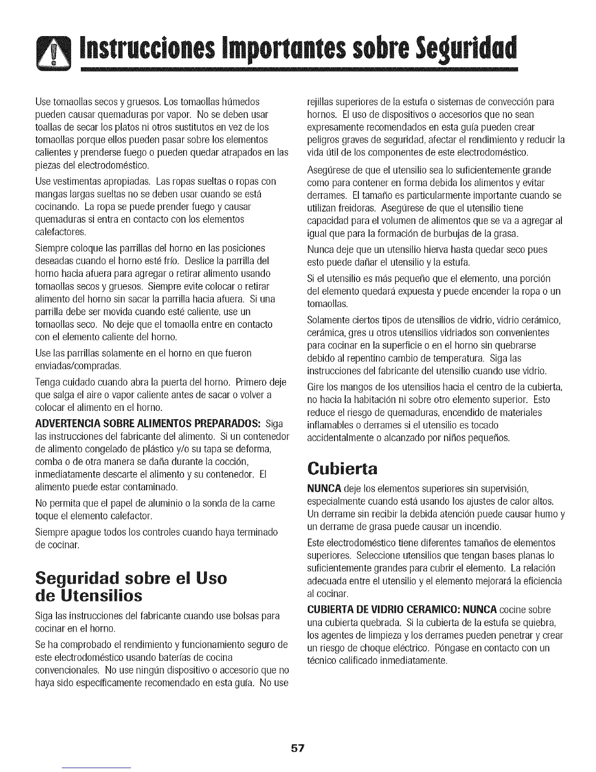 inflamables o derrames si el utensilio es tocado