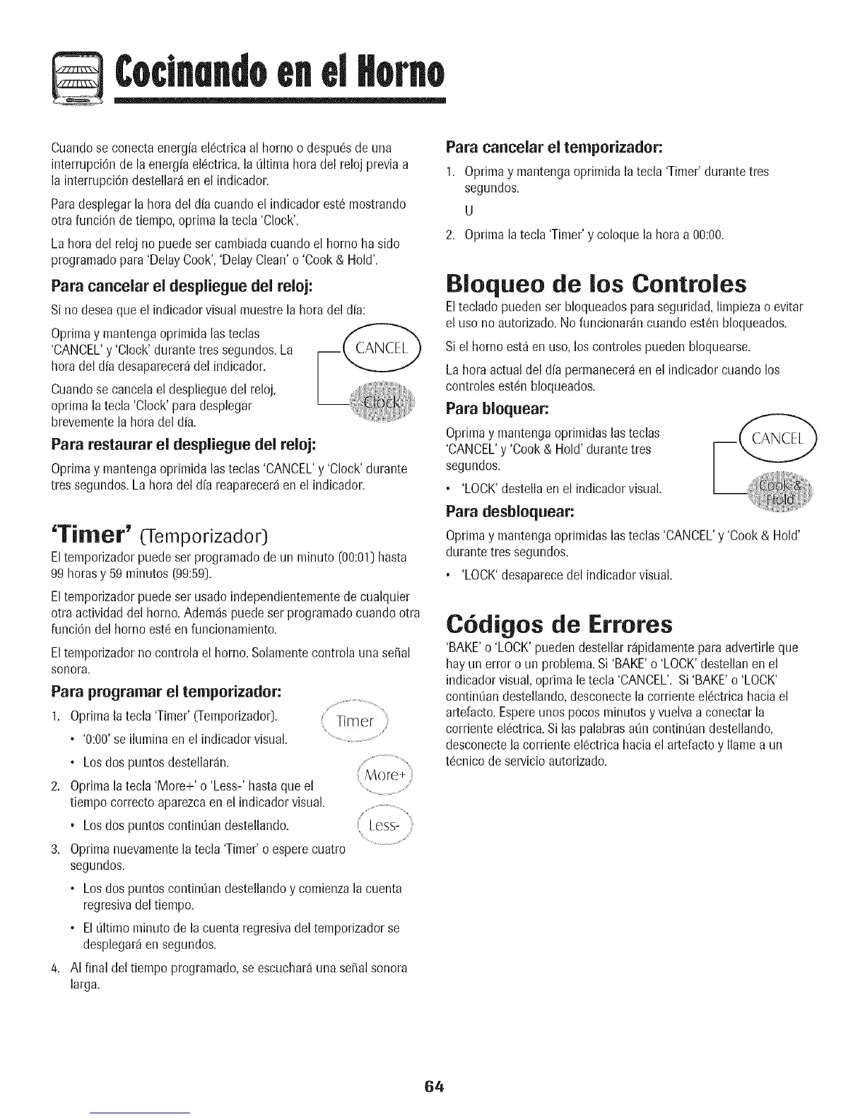 indicadorvisual,oprima le tecla'CANCEL'. Si'BAKE'o 'LOCK'