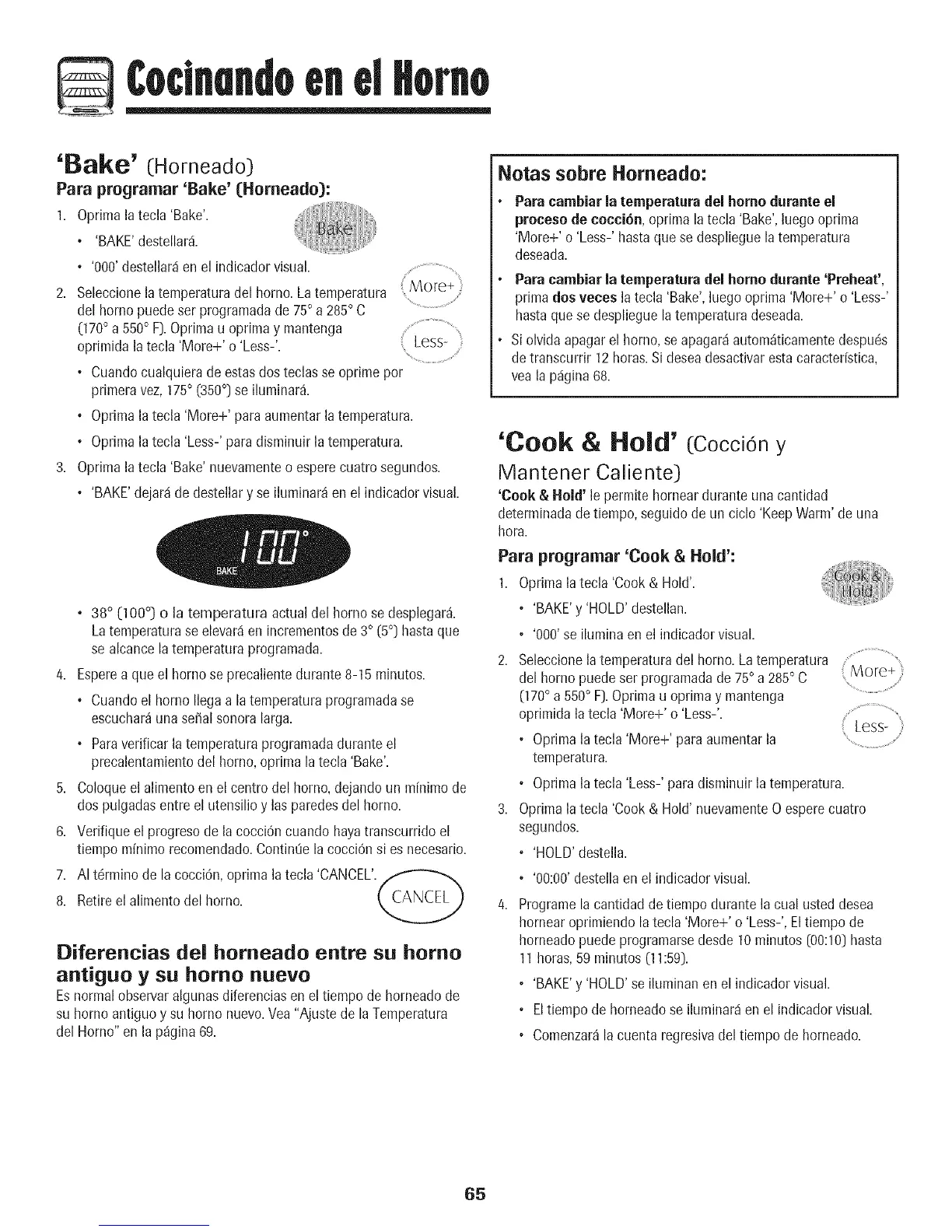 • 'BAKE'y 'HOLD'se iluminanen el indicadorvisual.
