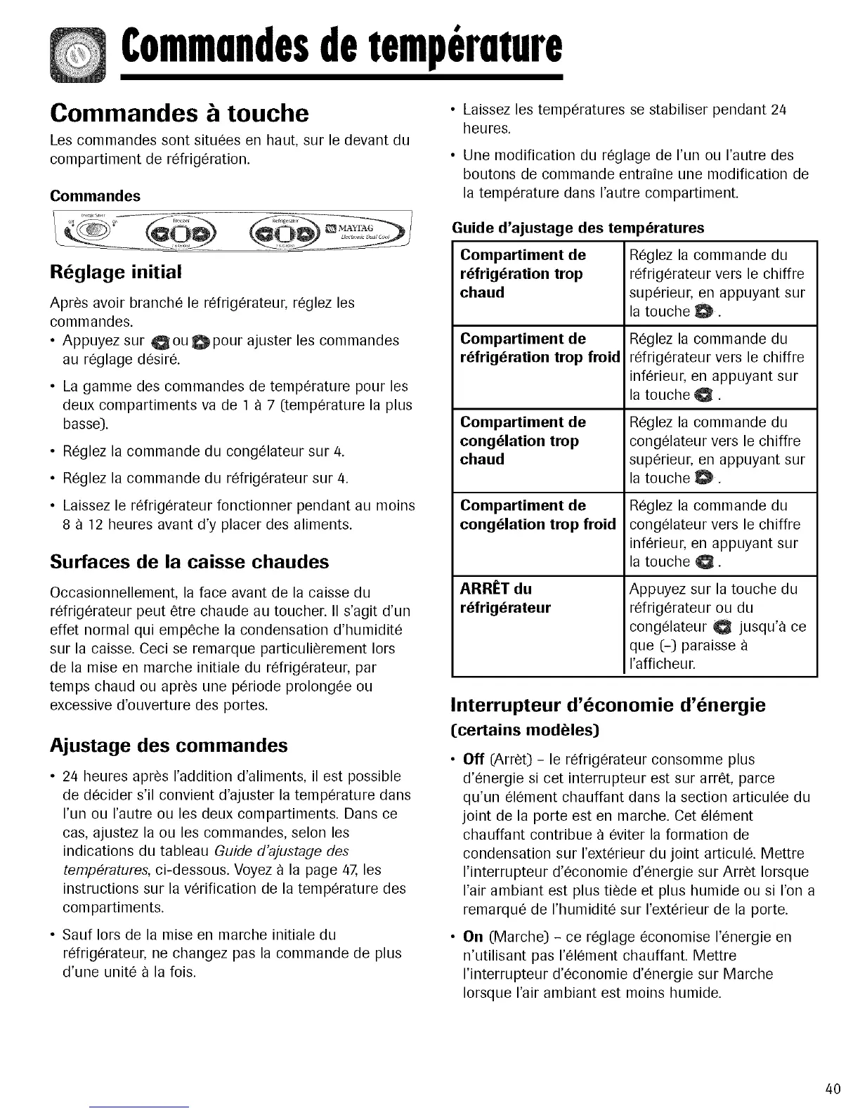 refrigerateur, ne changez pas la commande de plus