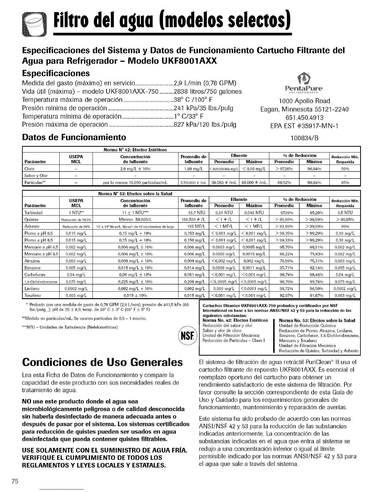 Cartuchos filtrantes UKFSO01AXX-750 probados y ¢ertilicados pot NSF