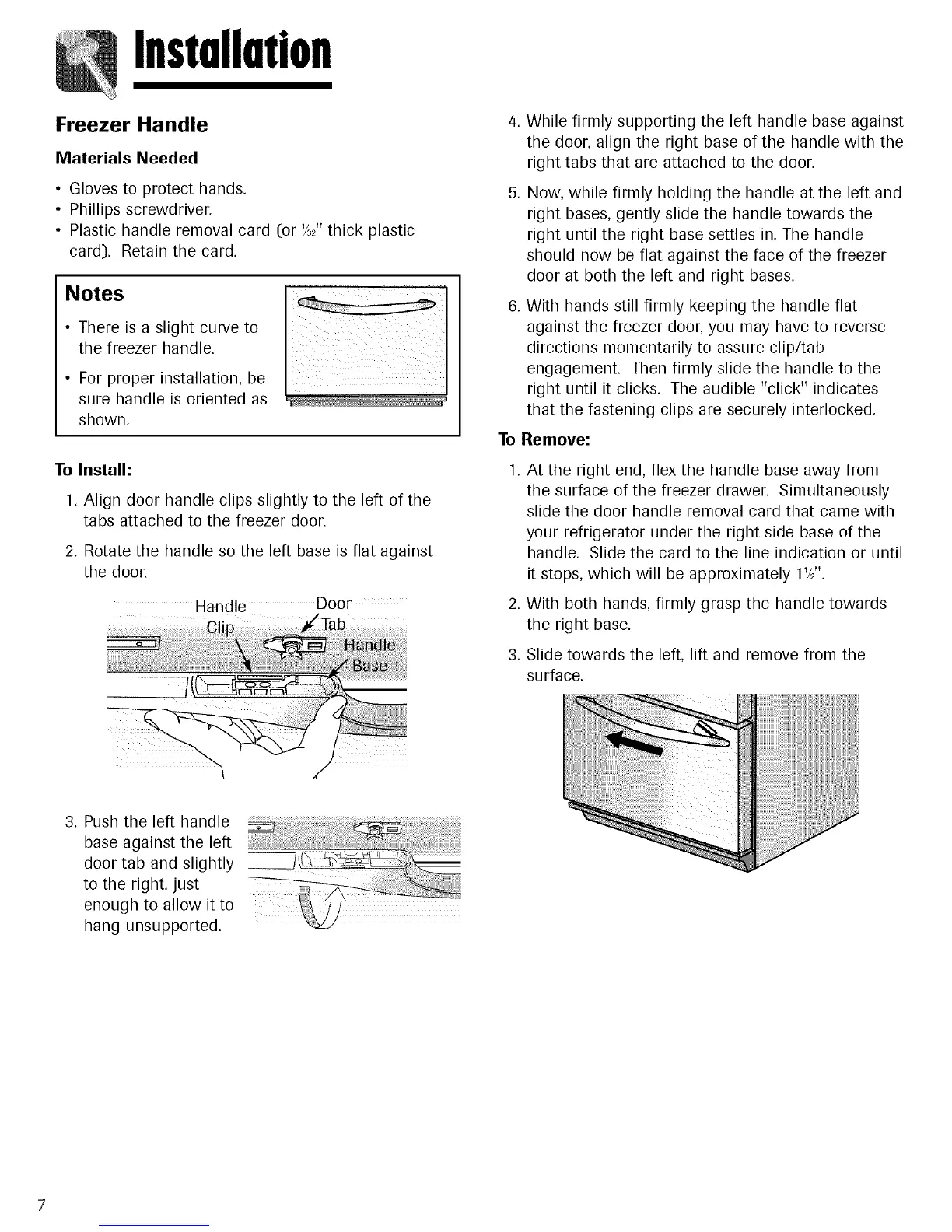 • Plastic handle removal card (or '/_2"thick plastic