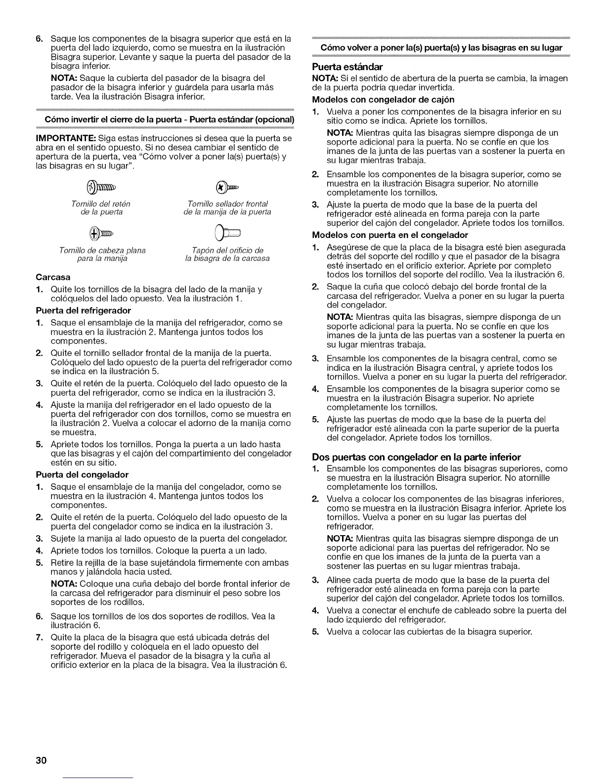 apertura de la puerta, vea "Como volver a poner la(s) puerta(s) y