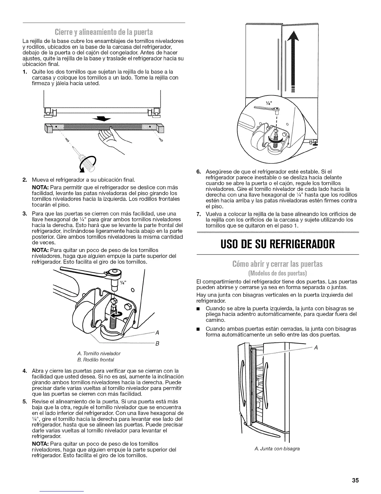 refrigerador, hasta que se alineen las puertas. Puede precisar