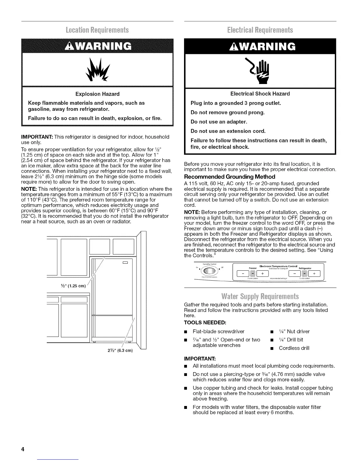(2.54 cm) of space behind the refrigerator. If your refrigerator has
