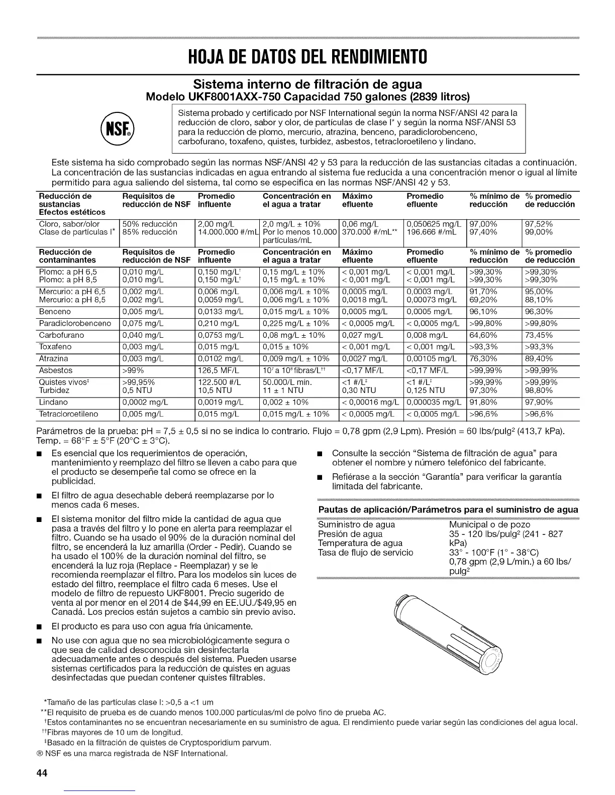 tEstos contaminantes no se encuentran necesariamente en su suministro de agua. El rendimiento puede variar segOn las condiciones del agua local.