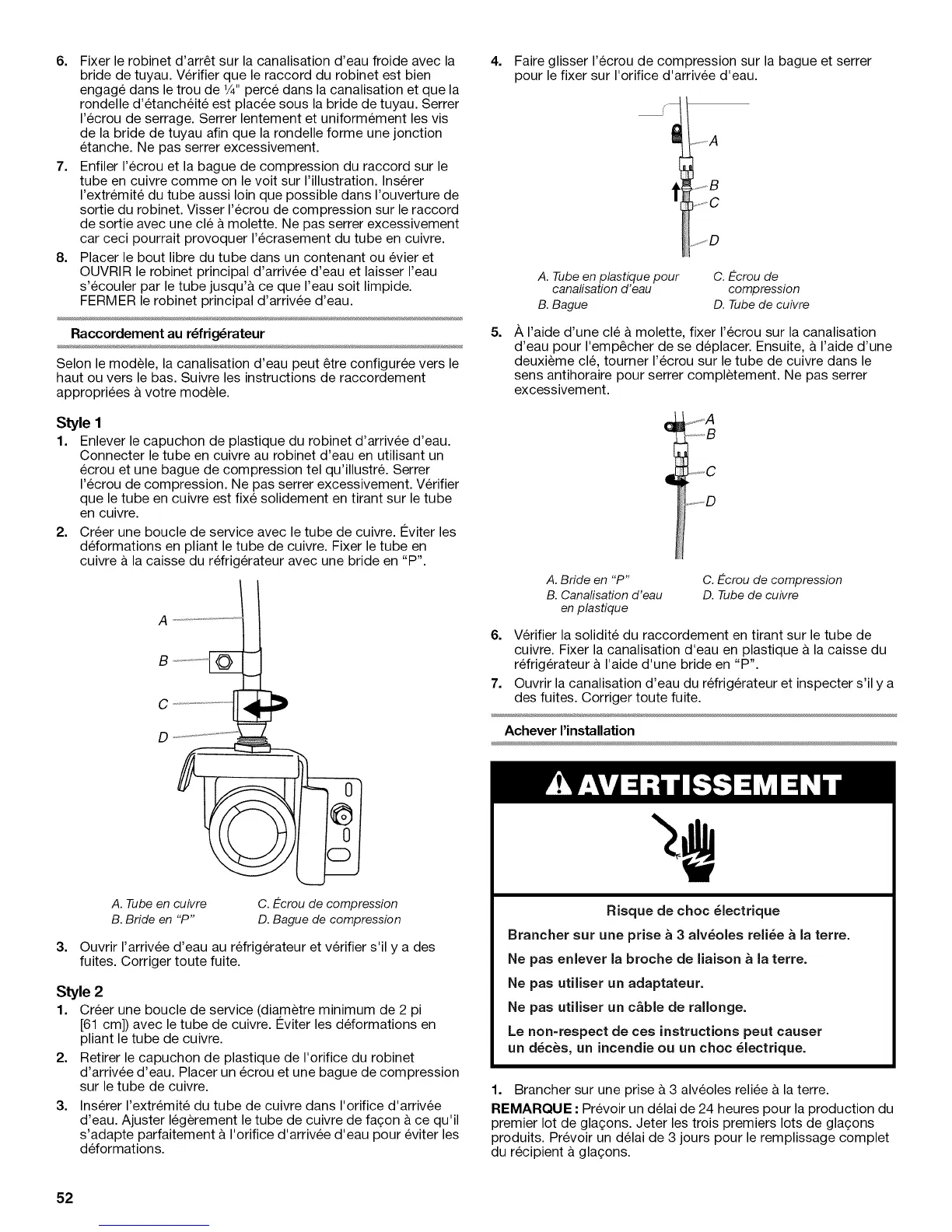 d'eau. Ajuster legerement le tube de cuivre de fa£;on & ce qu'il