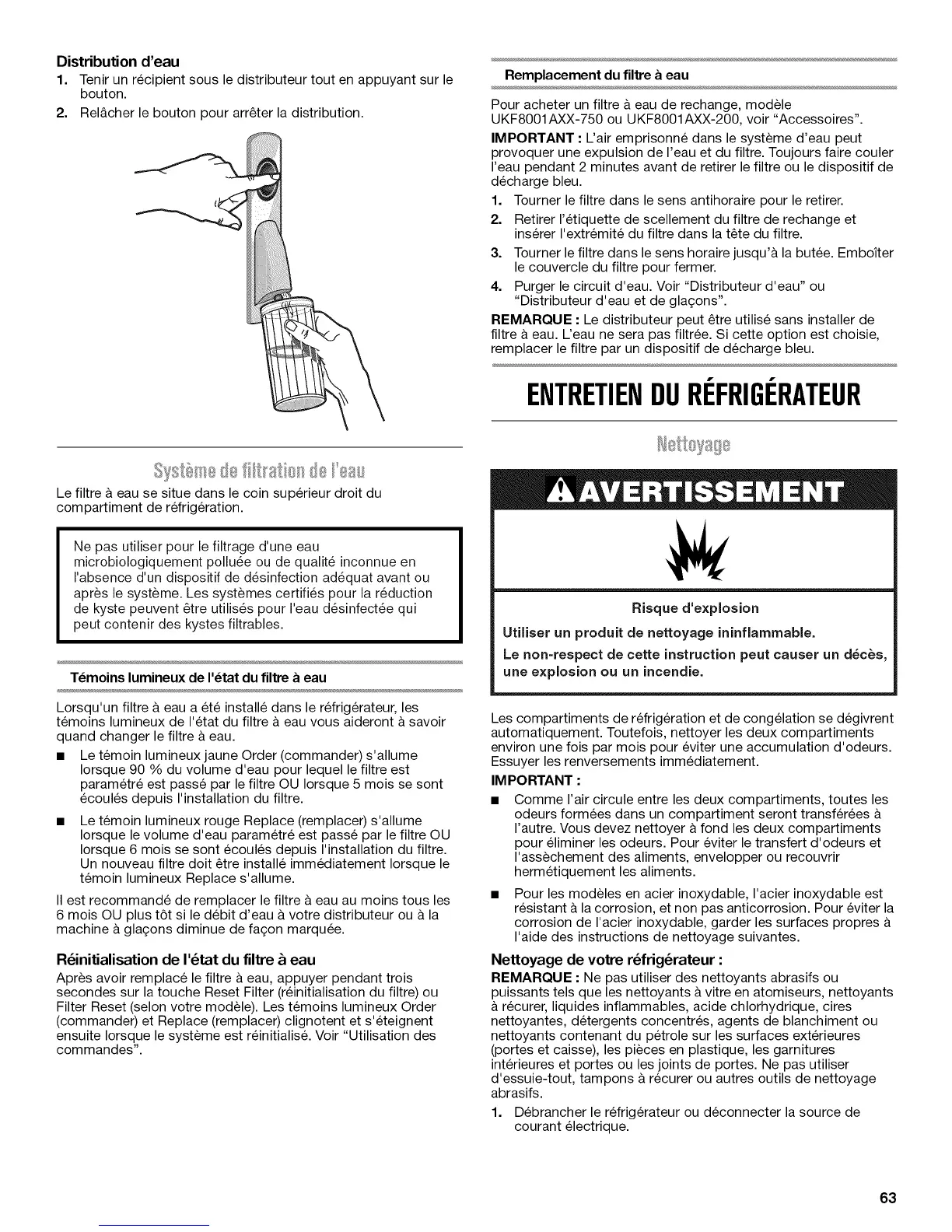 Apres avoir remplace le filtre & eau, appuyer pendant trois