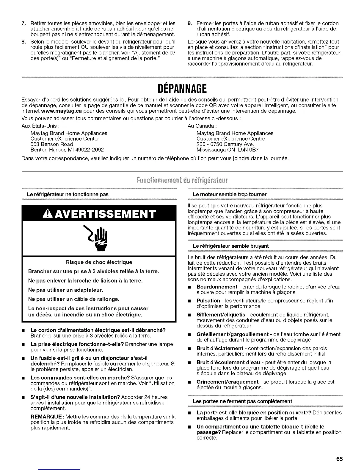 internet www.maytag.ca pour des conseils qui vous permettront peut-_tre d'eviter une intervention de depannage.