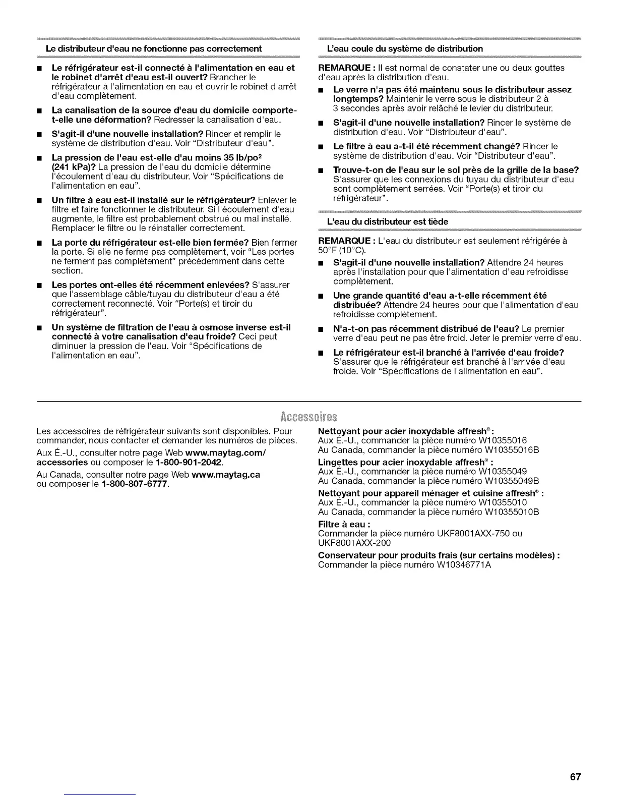 Au Canada, consulter notre page Web www.maytag.ca