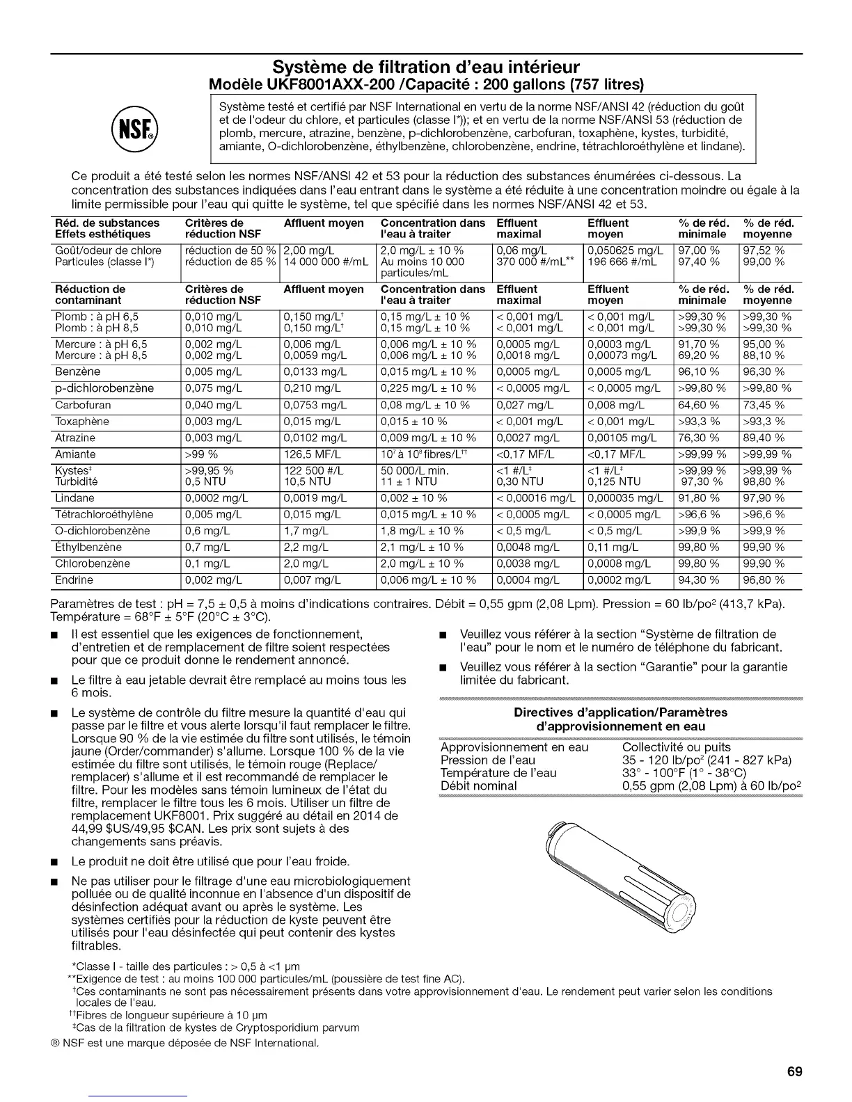 tCes contaminants ne sont pas necessairement presents dans votre approvisionnement d'eau. Le rendement pout varier solon los conditions