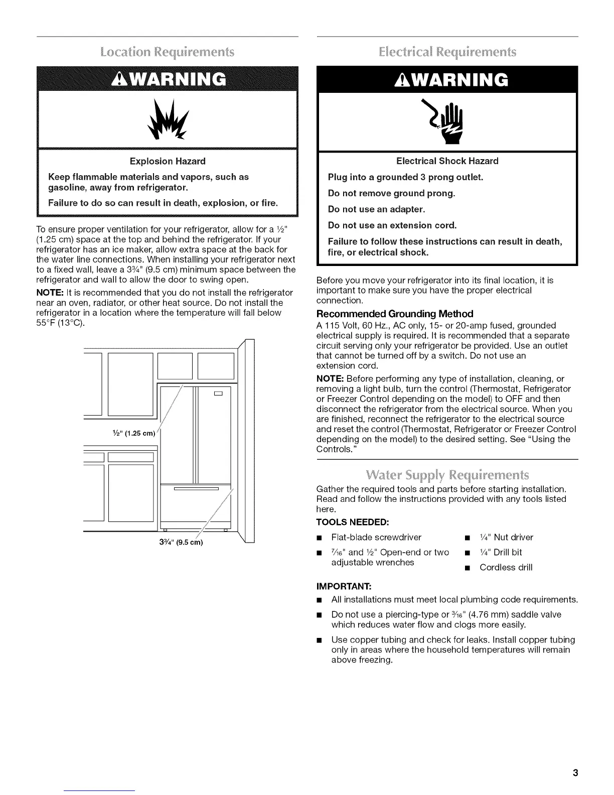 (1.25 cm) space at the top and behind the refrigerator. If your