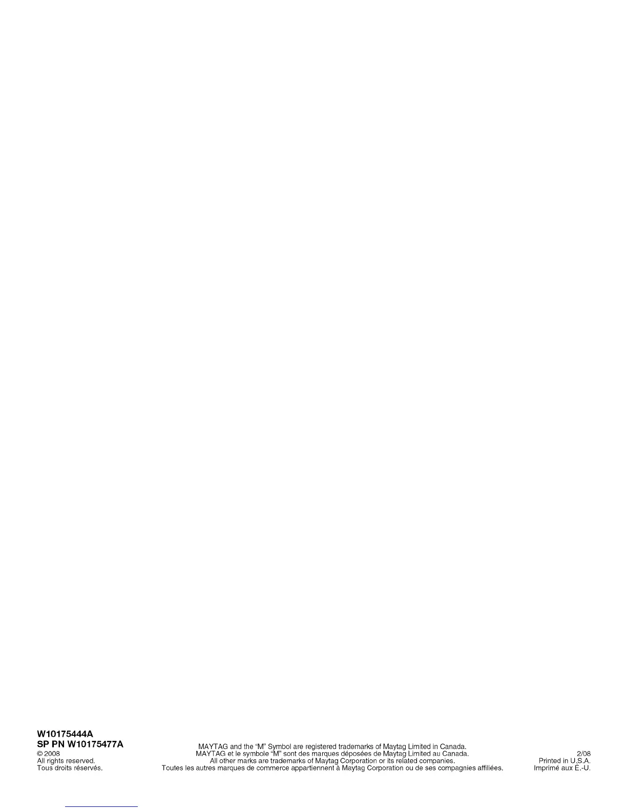 MAYTAG and the "M" Symbol are registered trademarks of Maytag Limited in Canada.
