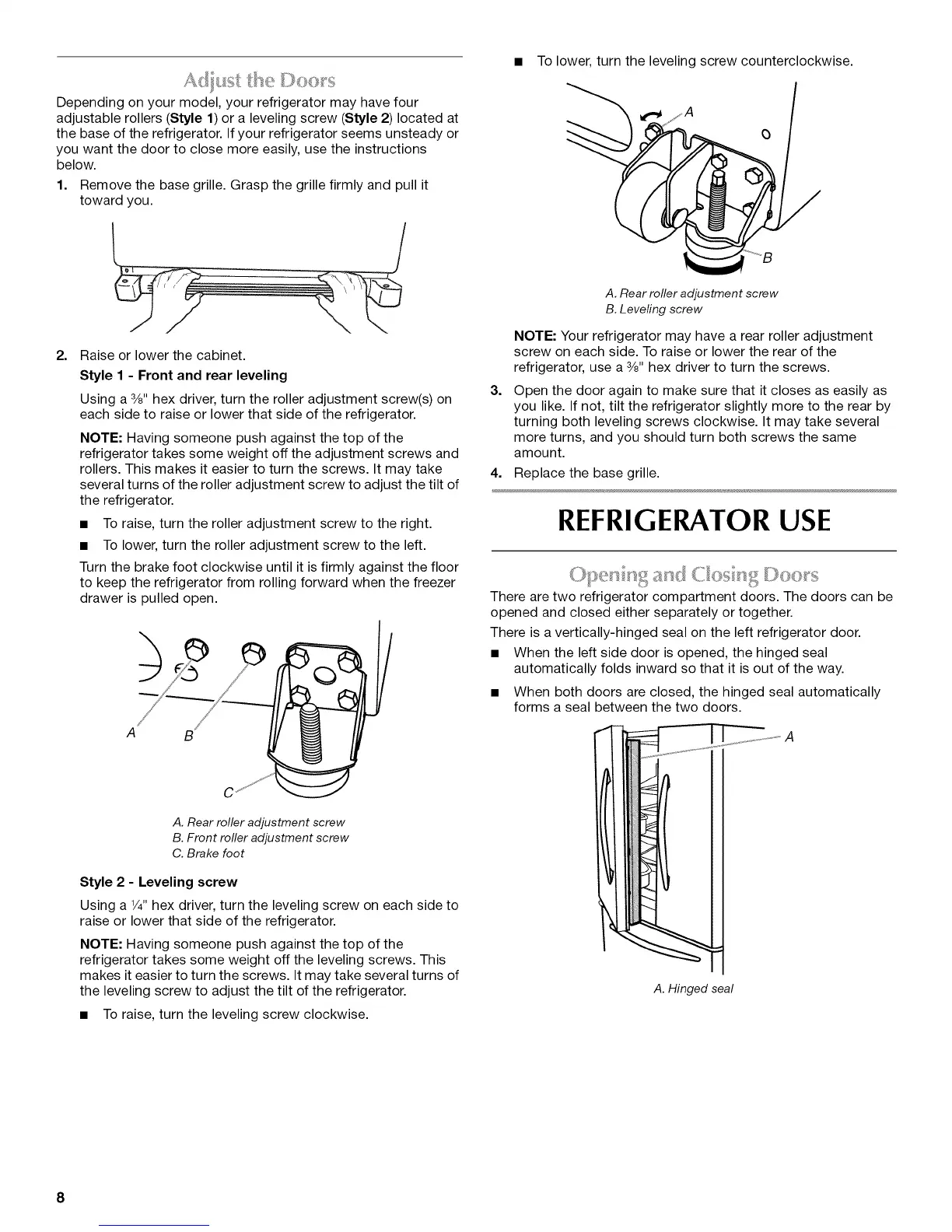 the base of the refrigerator. If your refrigerator seems unsteady or