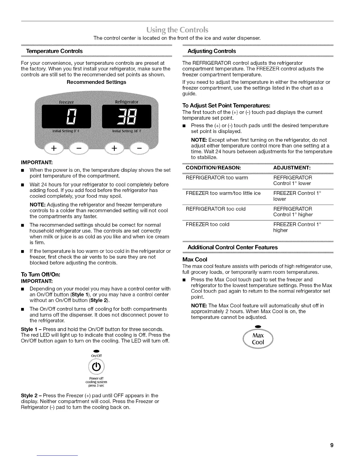 Style 2 - Press the Freezer (+) pad until OFF appears in the