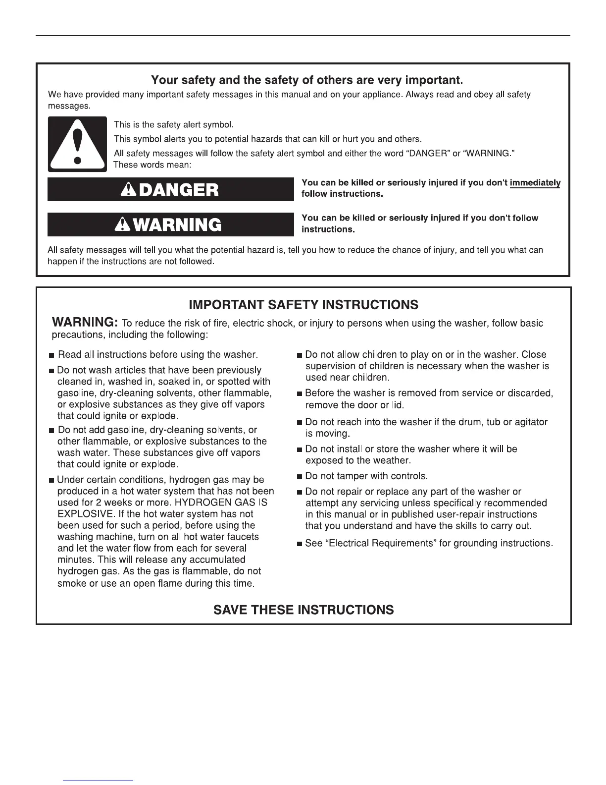 Maytag MFS125 - WASHER SAFETY; IMPORTANT SAFETY INSTRUCTIONS