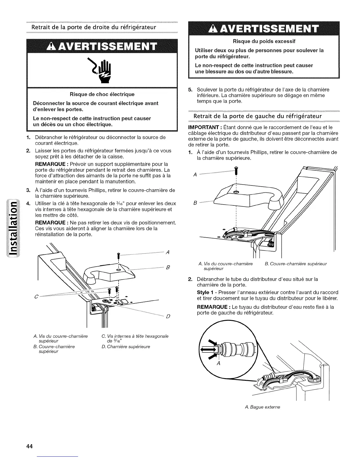A. Vis du couvre-charniere B. Couvre-charniere sup_rieur