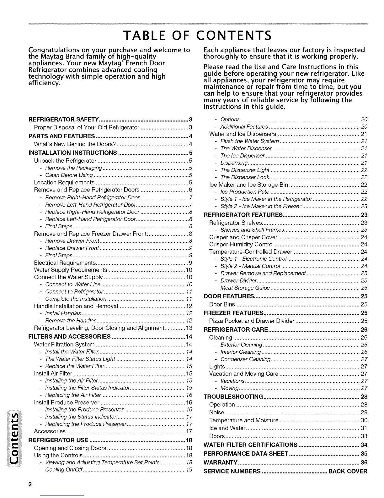 WATER FILTER CERTIFICATIONS ...................................... 34