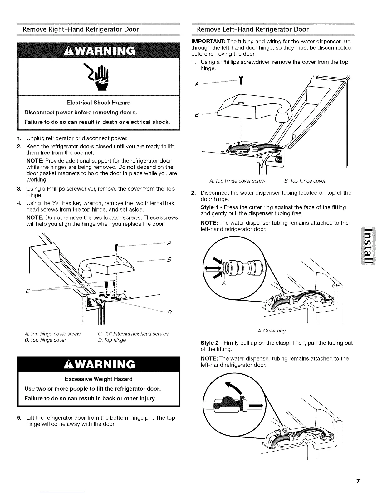 Use two or more people to lift the refrigerator door.