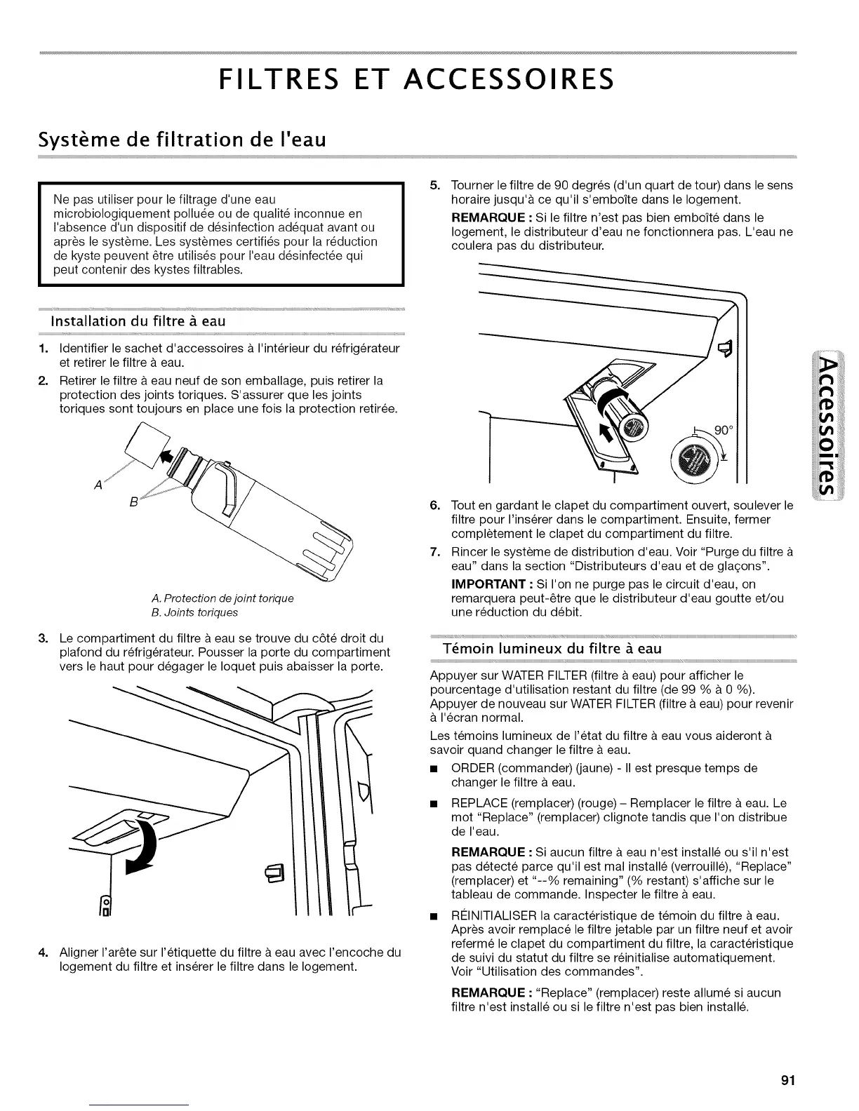 Le compartiment du filtre a eau se trouve du c6te droit du