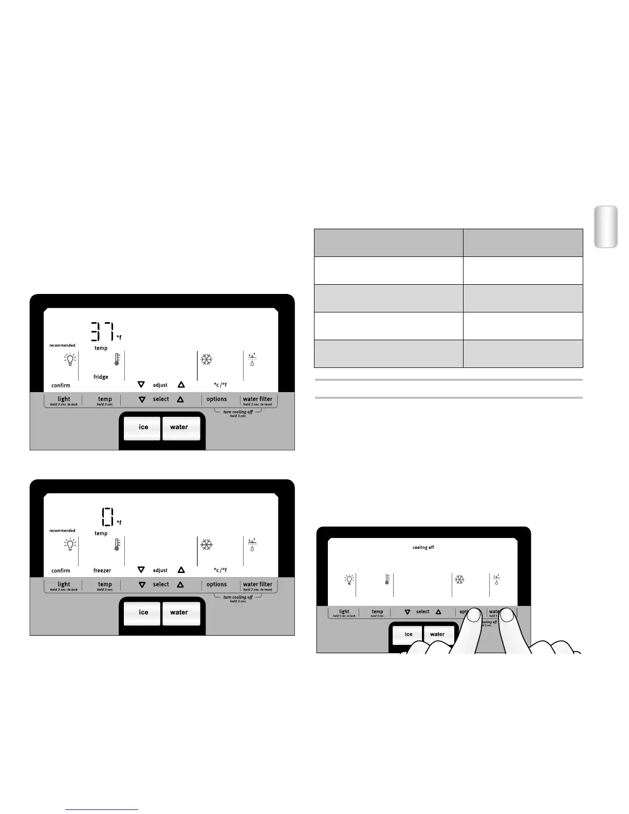 turned off. When cooling is off, “cooling off” will light up on the