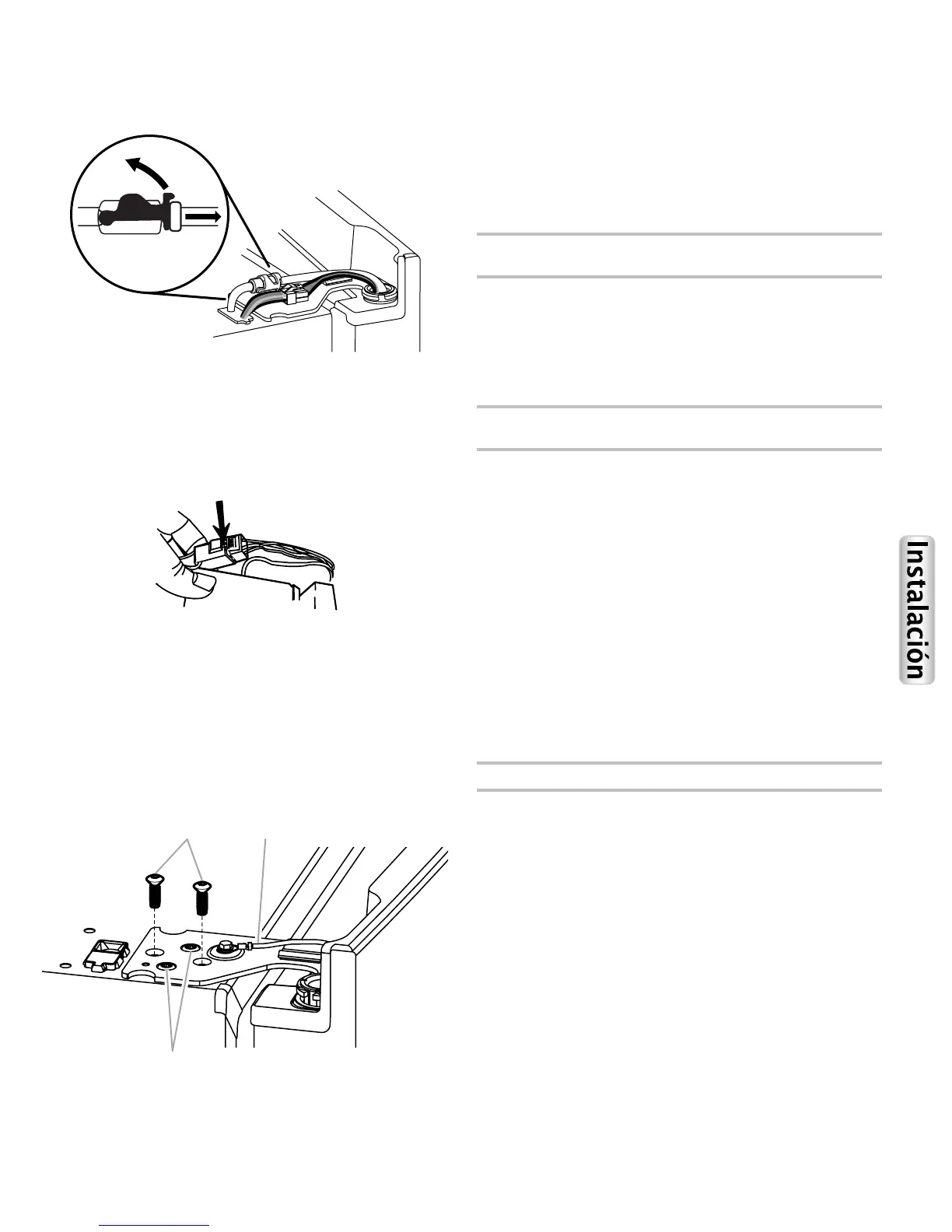 internos de ³⁄₁₆". No apriete completamente los tornillos.
