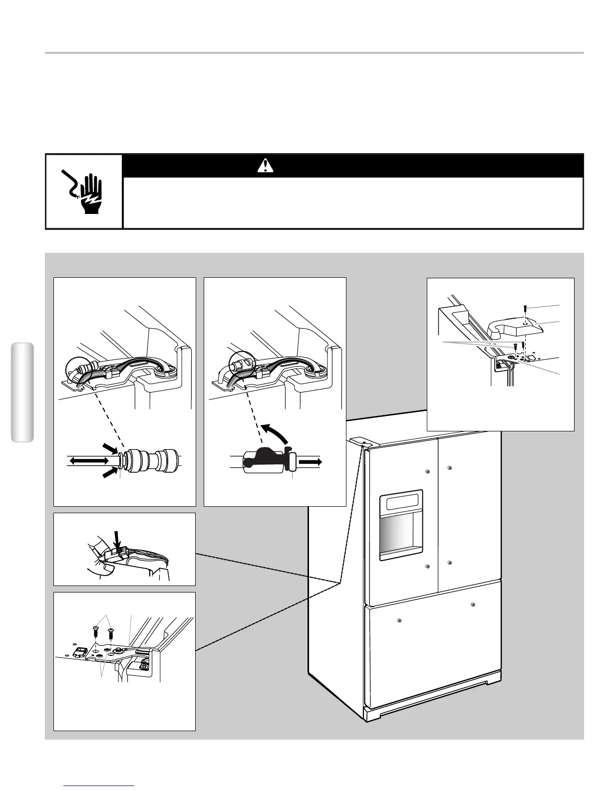courant électrique. Retirer les aliments et tout balconnet de porte (utilitaire ou réglable) du réfrigérateur.