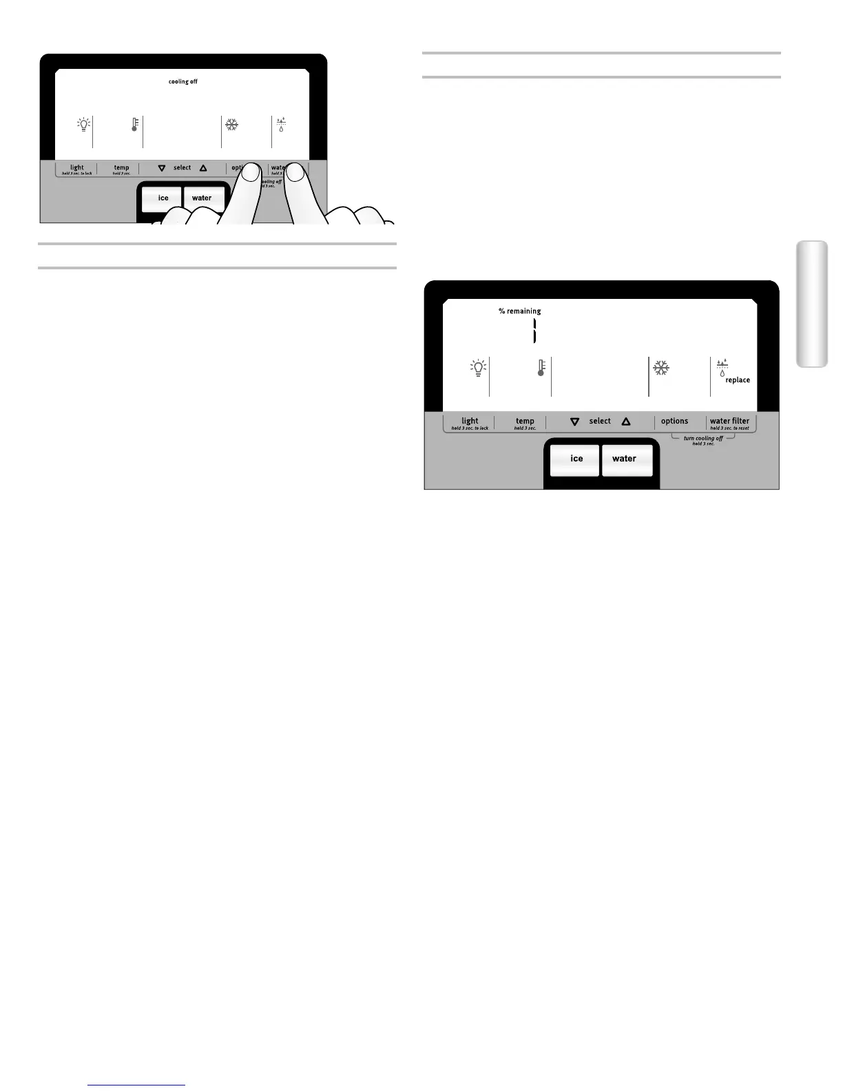 Appuyer sur WATER FILTER (filtre à eau) pour afficher le