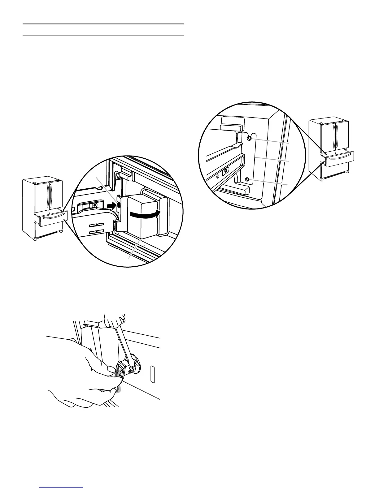 Mantenga los tornillos en el frente del cajón.