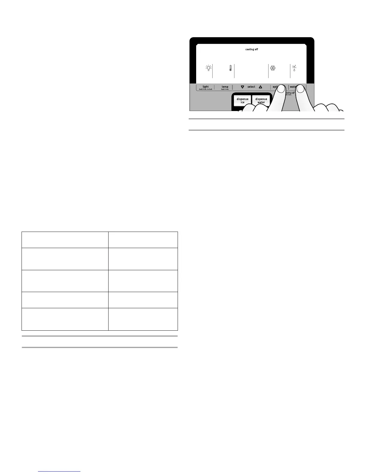 Estilo 1 - Presione y sostenga OPTIONS (Opciones) y WATER