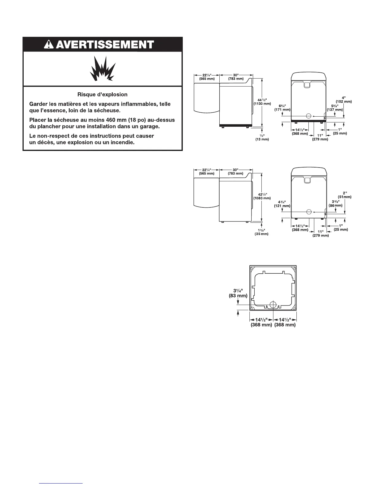 un espace minimum de 5" (127 mm) derrière la sécheuse pour