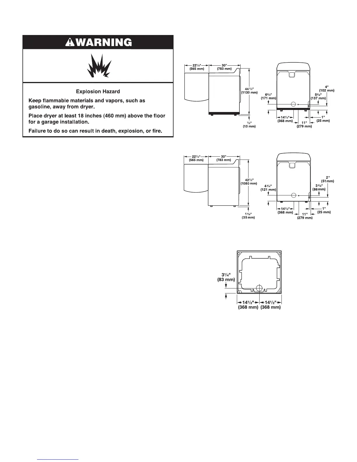 ■ Floor must support dryer weight of 200 lbs. (90.7 kg).
