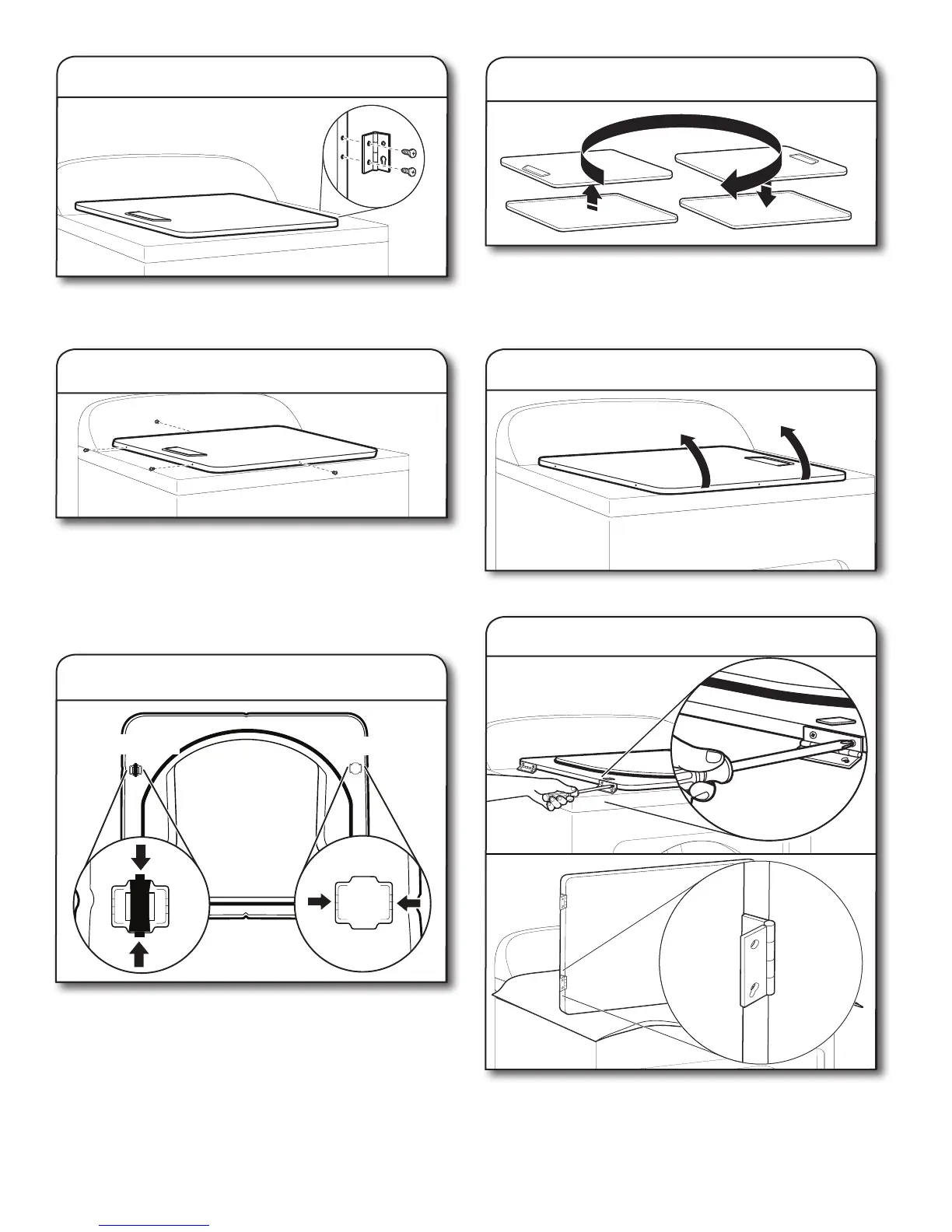 Reattach door hinges to dryer door so that the larger hole is