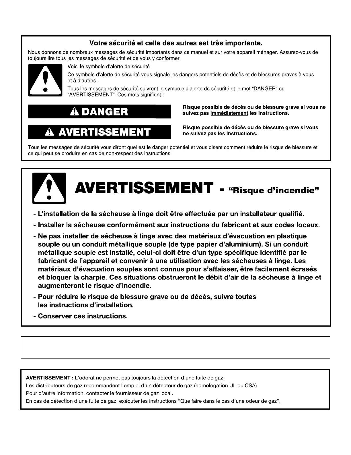 IMPORTANT : Pour mettre l’ancienne sécheuse au rebut ou pour la remiser, enlever la porte.