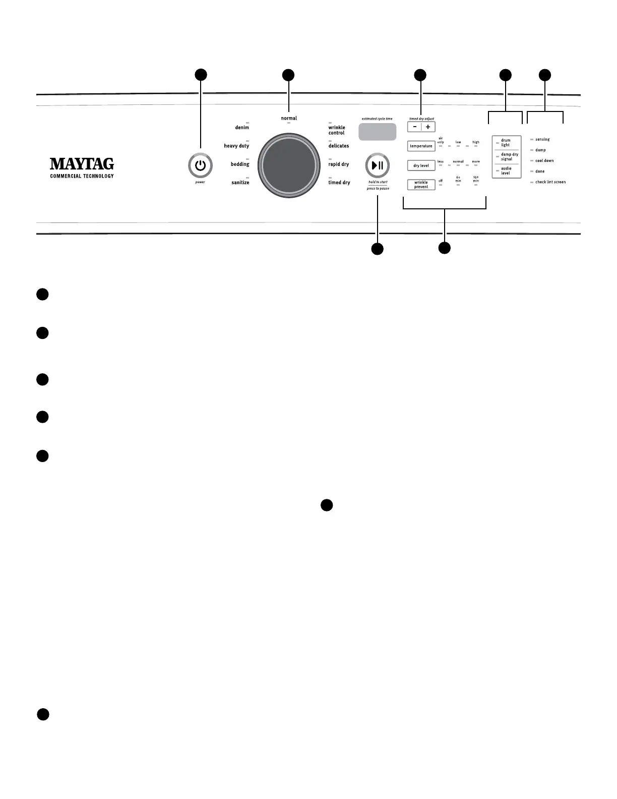 Touch to turn the dryer on and off. Touch to stop/cancel