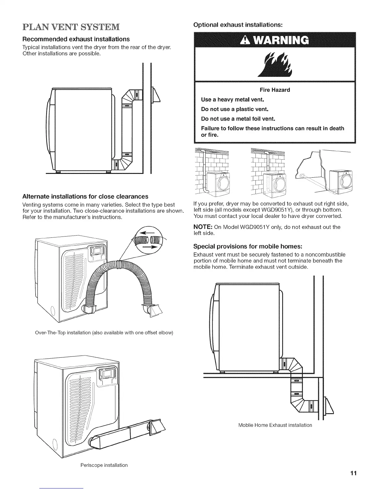 NOTE: On Model WGD9051Y only, do not exhaust out the