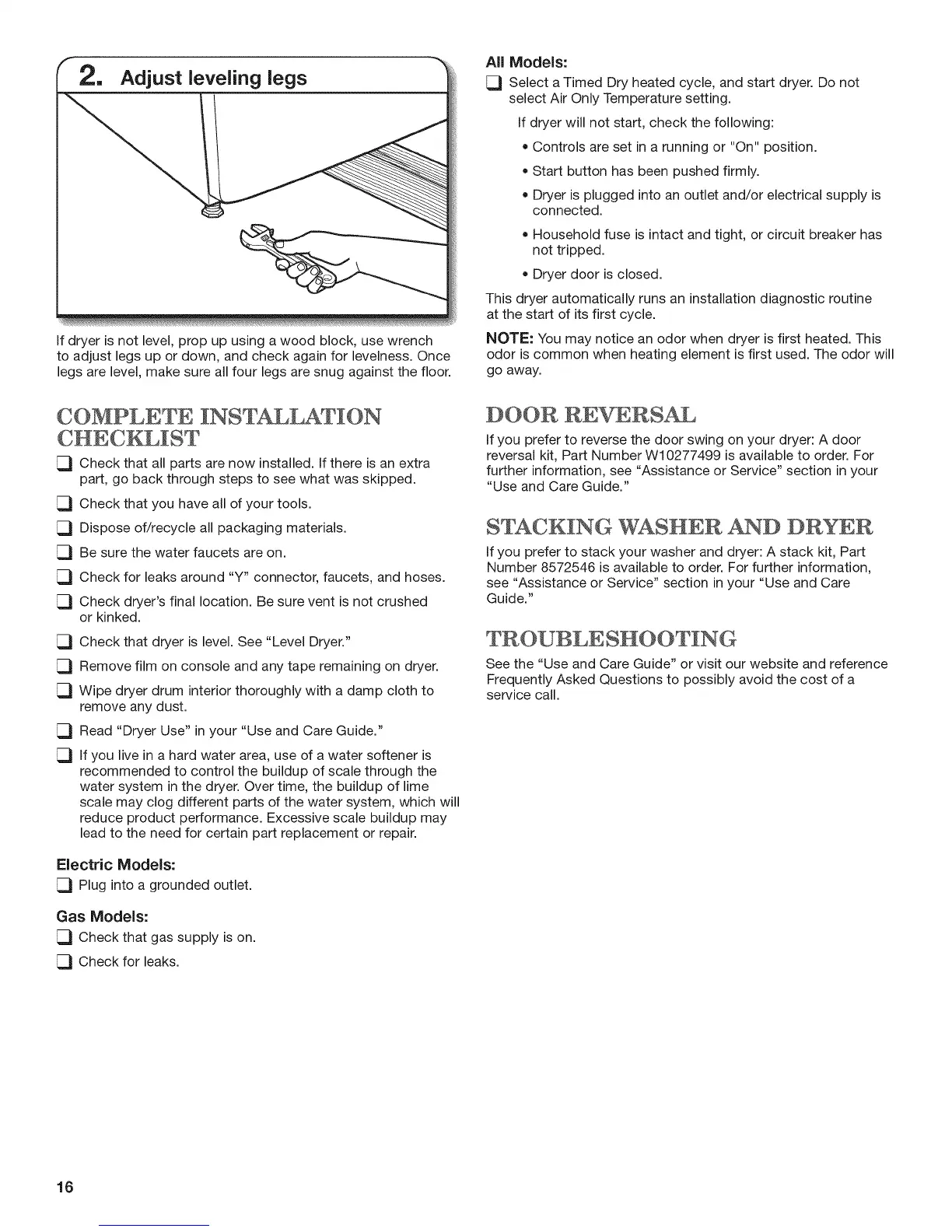 [_ Check that dryer is level. See "Level Dryer."