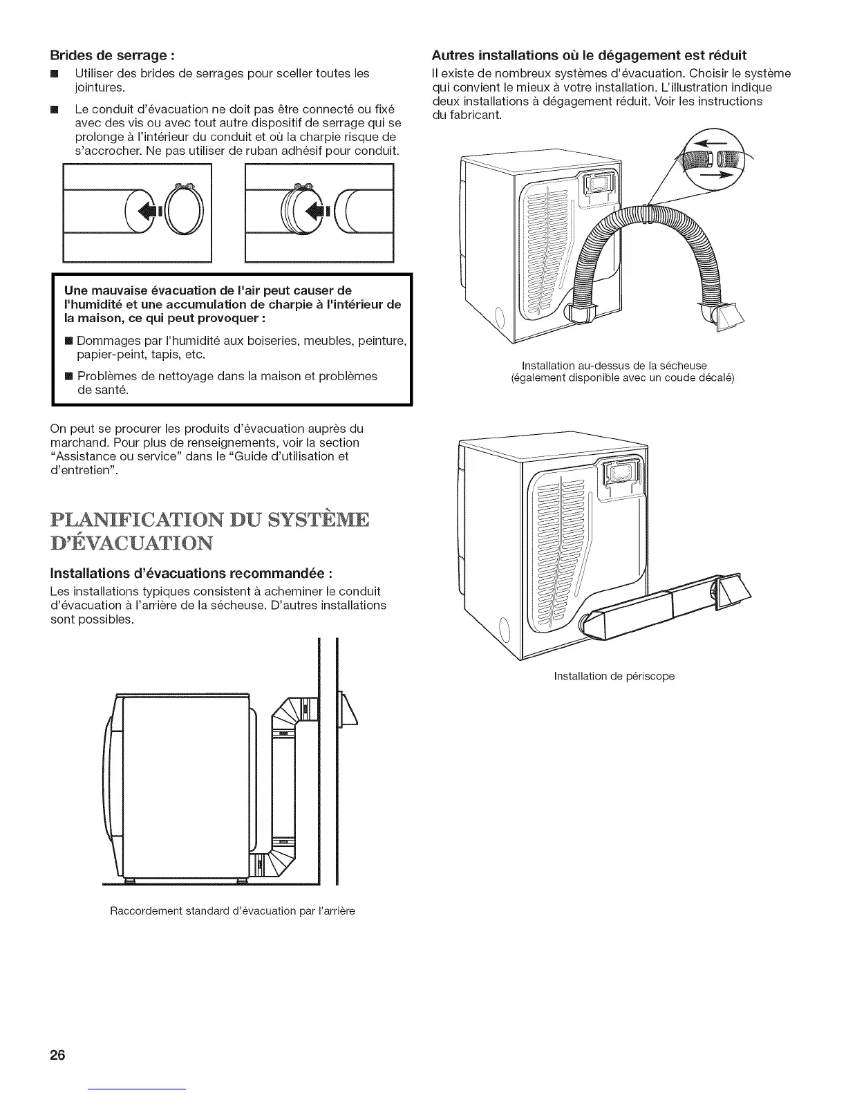 Le conduit d'6vacuation ne dolt pas _tre connect6 ou fix6